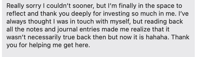 Reading it, I feel myself inhale deeply and hold a sensation of expansion in my chest. To me, messages like this capture why this work matters.